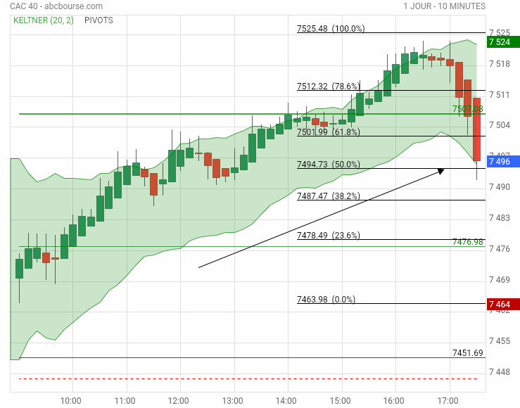 Je me permets d'indiquer que dernièrement et plusieurs fois, à l'arrivée sur un fibo 62, j'annonçais une petite pause très probable et... Le Cac s'est nettement replié.