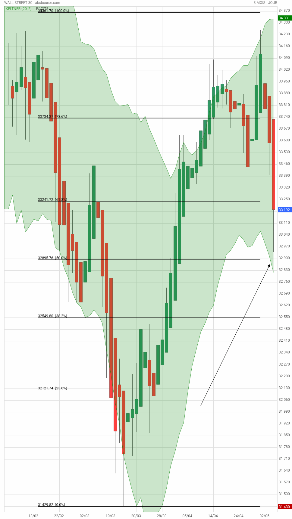 Dow, sur range 34100/33100, quasi tout à été retracé à la baisse.