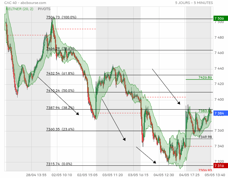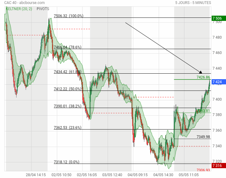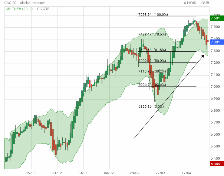 En traçant une grille fibo sur le range de jeudi, 7316/7390, on peut voir ceci .