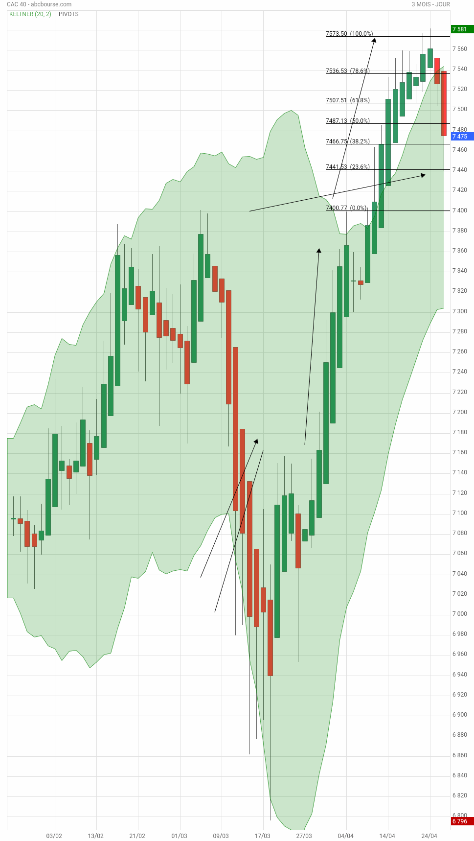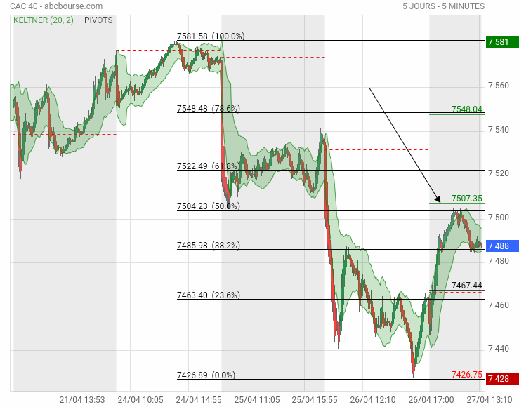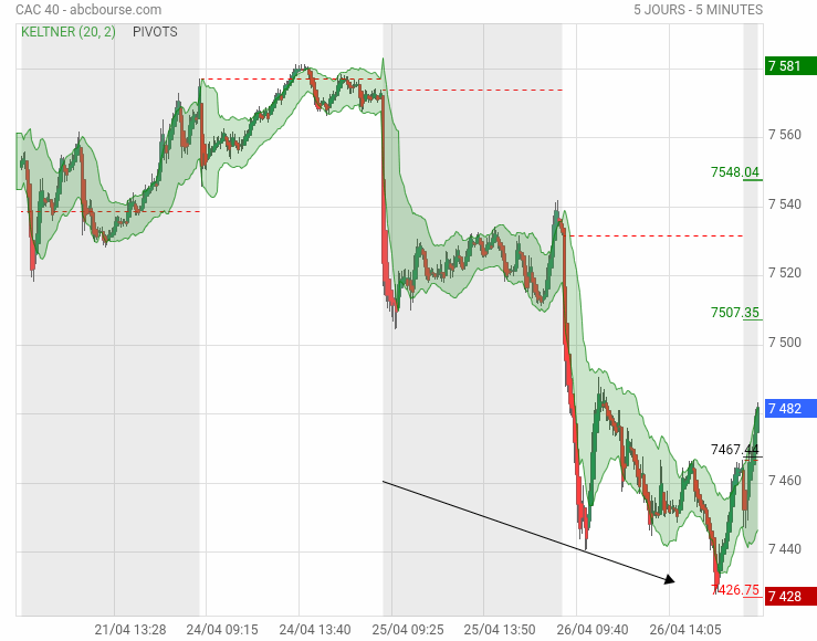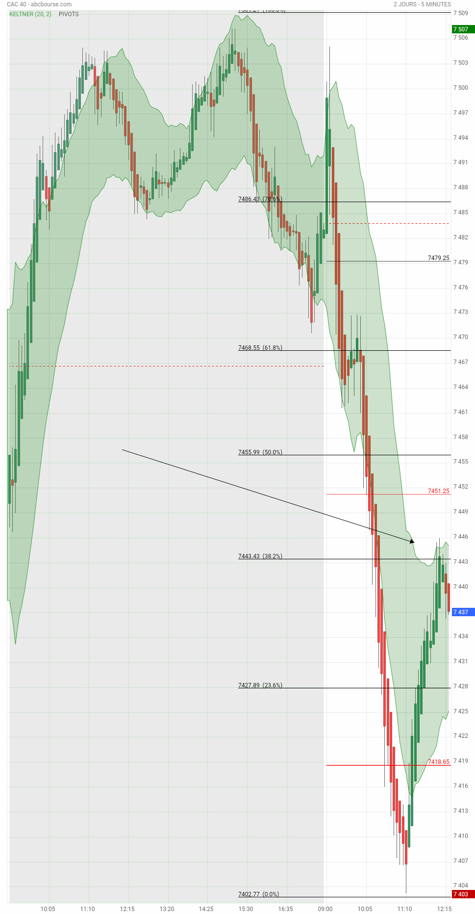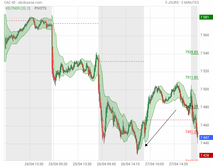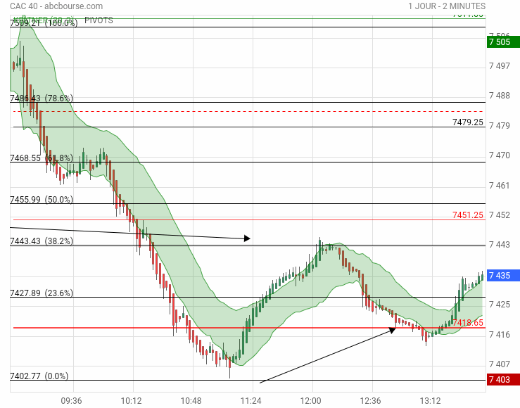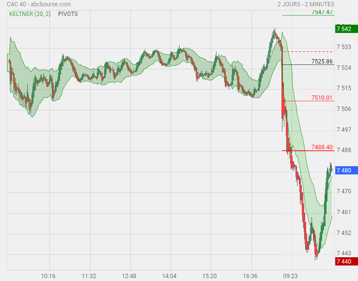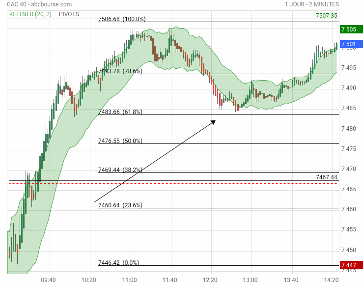 Keltner a été cassée et les cours avaient hésité un moment vers 7417.