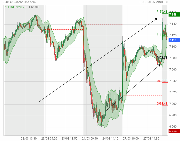 La flèche montre le niveau auquel est allé le Cac lors de cette dernière conso.