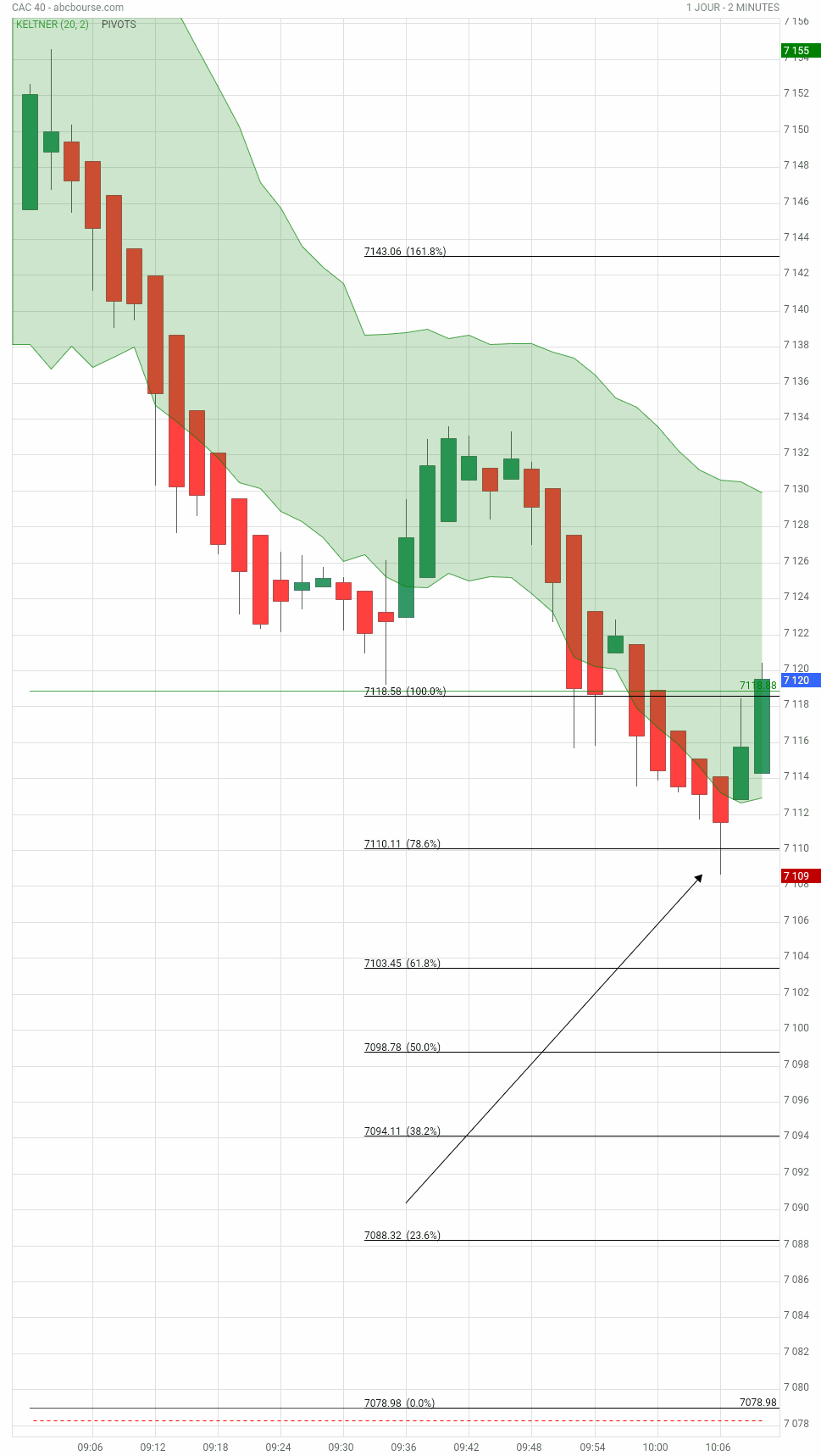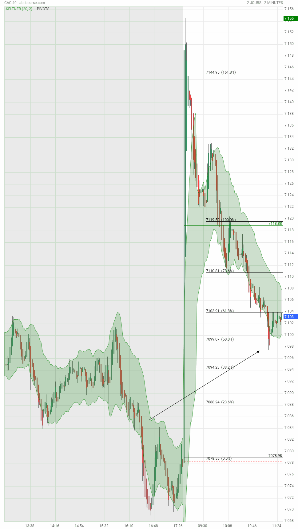 Vue 13h44 ici. Rebond sur le pivot PP, 7078
