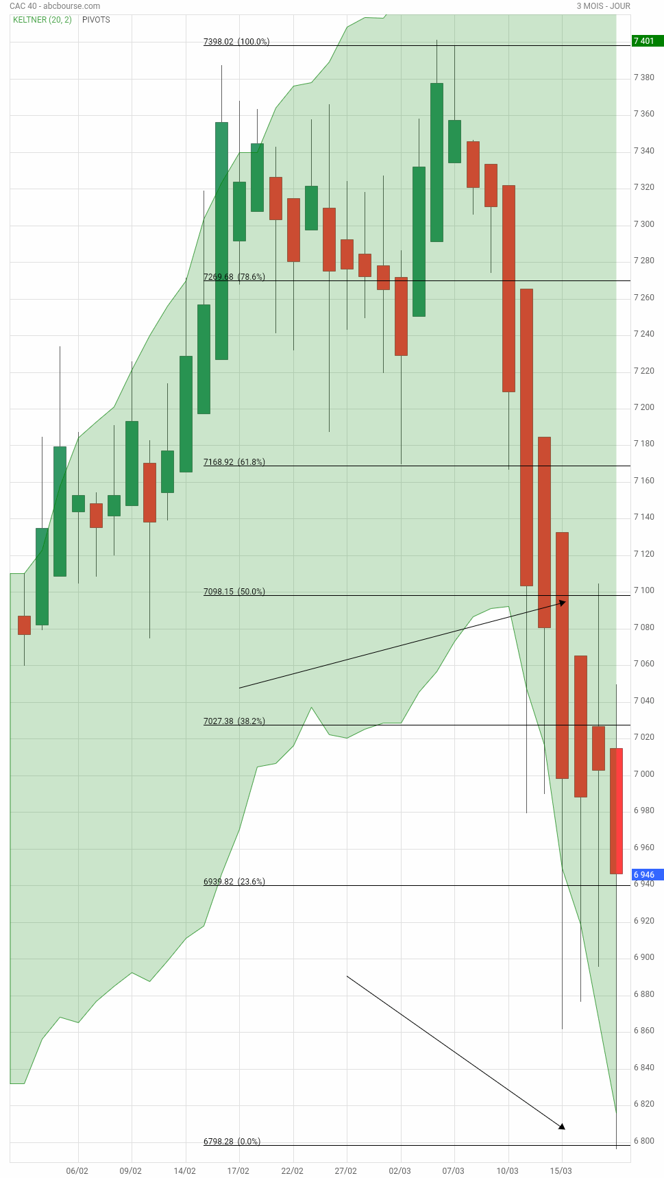 Depuis le Cac s.est fortement replié jusque 6777 à 1 point près.