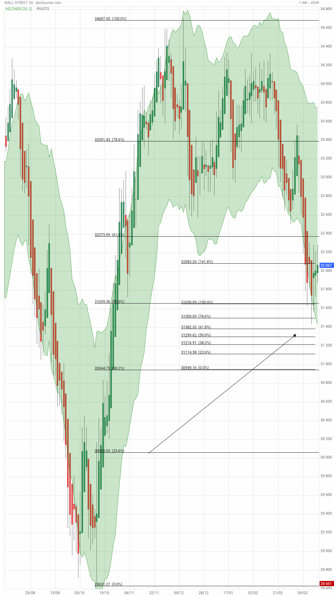 Vue 9h54 ici. Le mini fibo fléché montre le niveau bas atteint.