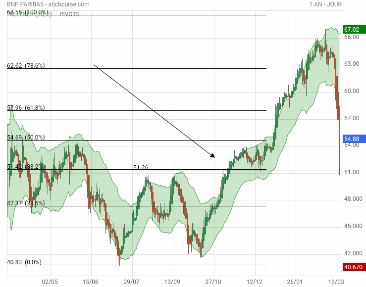 La flèche qui pointe le mini fibo 50 montre la zone de résistance.