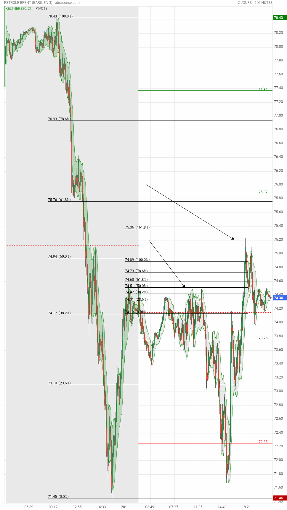 Le.point pivot et le retracement 24 (%), font ici résistance, au moins temporairement.