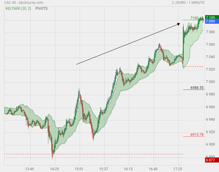 Le Cac continue son rebond. Après la zone 7050, il arrive sur 7100.