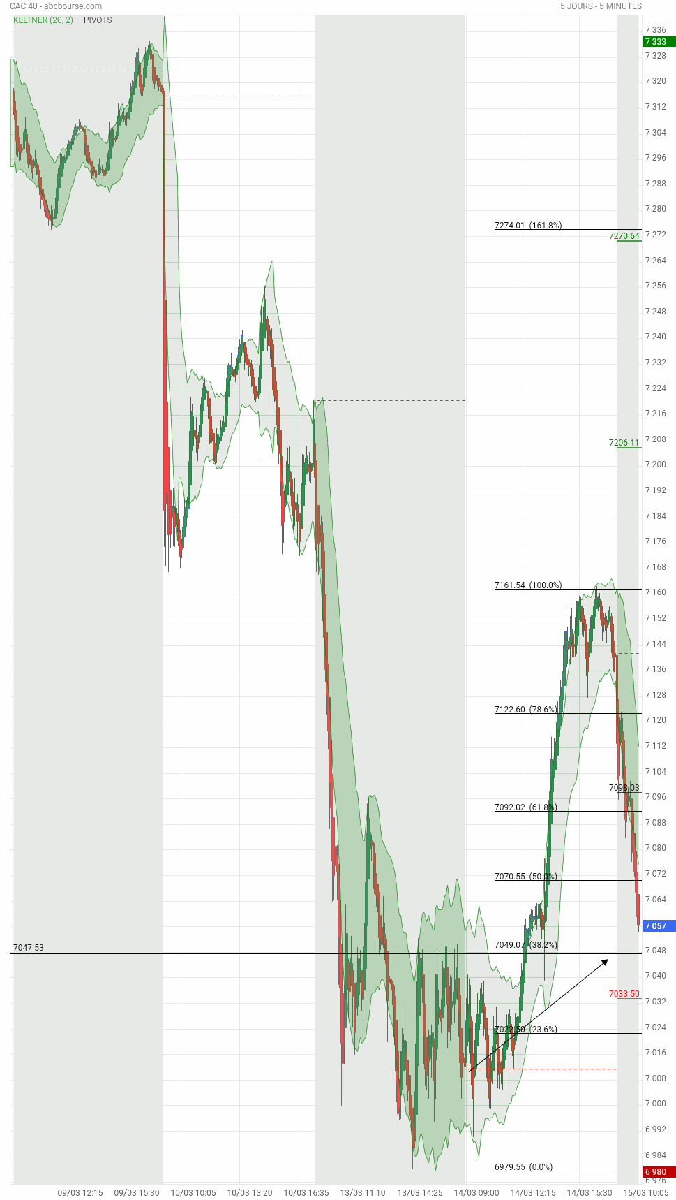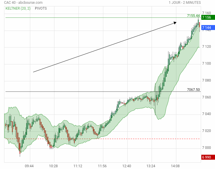 Mini rebond Cac de 15 points, entre 7014 et 7029. Mais c.est fragile pour.instant.