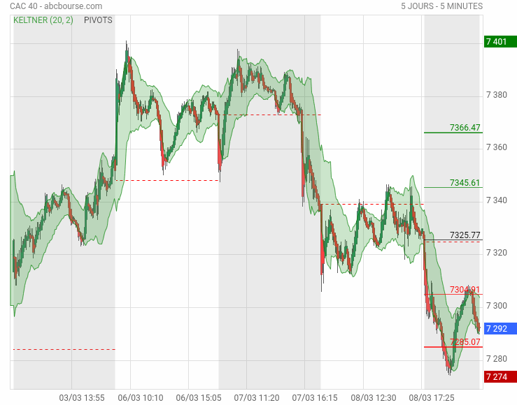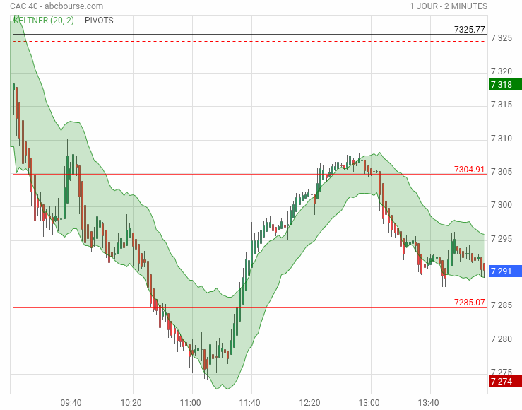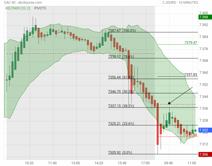 Le Cac se maintient au dessus de 7300. Il vient de faire un rebond jusque la zone 7335 , située au milieu de 7300 et 7370.