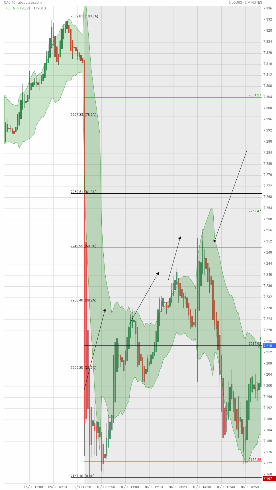 Le dernier rebond, entre 7172 en bas et 7220 à droite, représente environ 62%.De l'ecart 7172/7256 du milieu de journée.