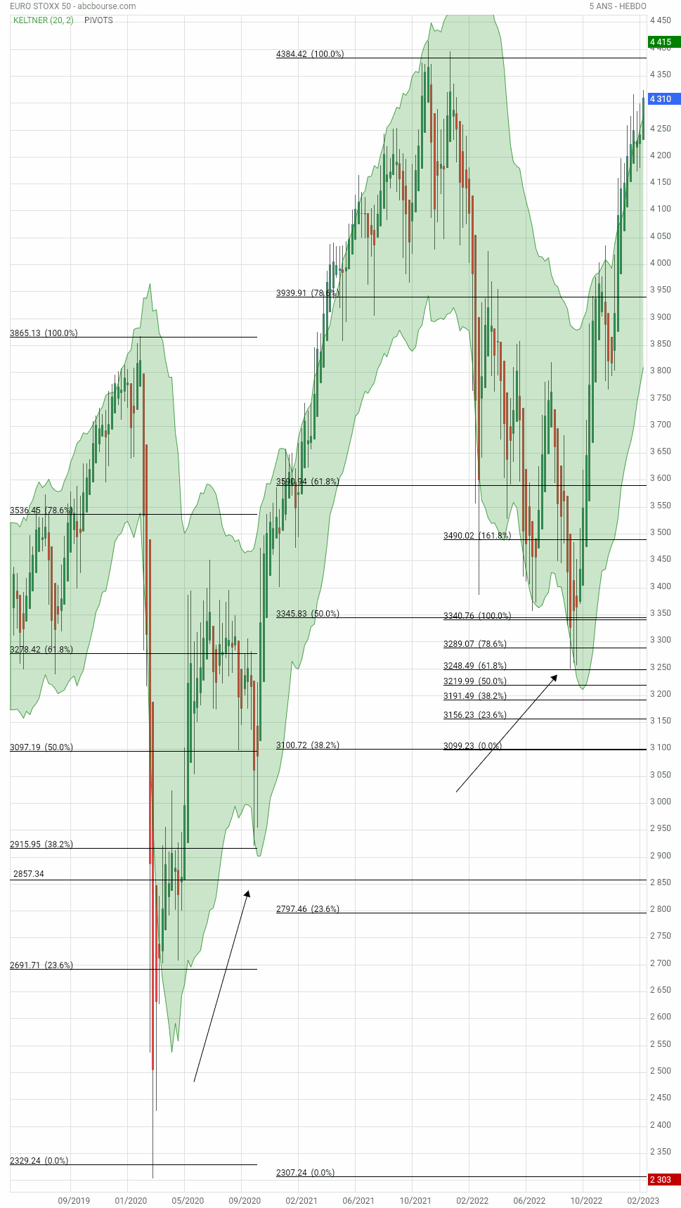 Si une troisième phase de hausse de même amplitude que les deux premières se formait depuis la bas à droite, l'indice pourait aller visiter les 4600/4650.
