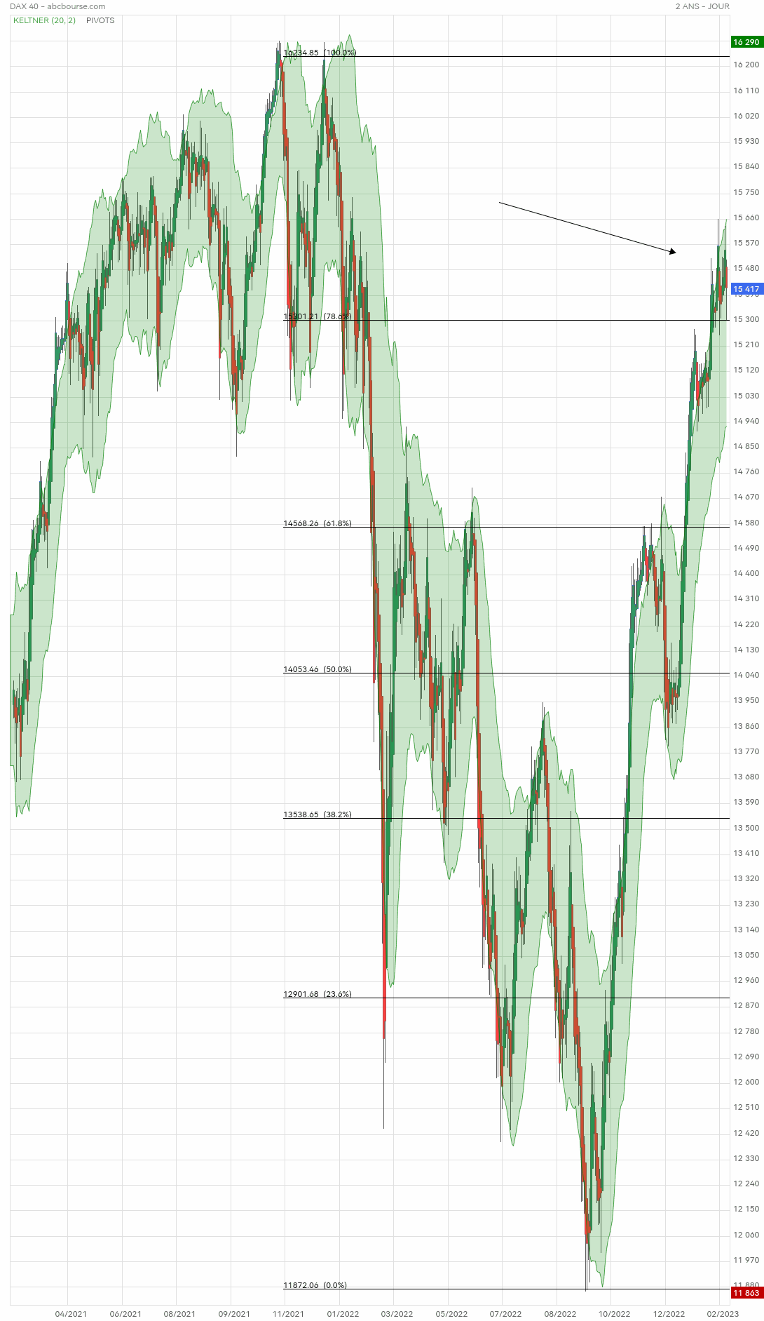 Il n'était pas évident pour le Dax de franchir la résistance des 15400, donc vers le fibo 78, mais il a réussi à le faire.