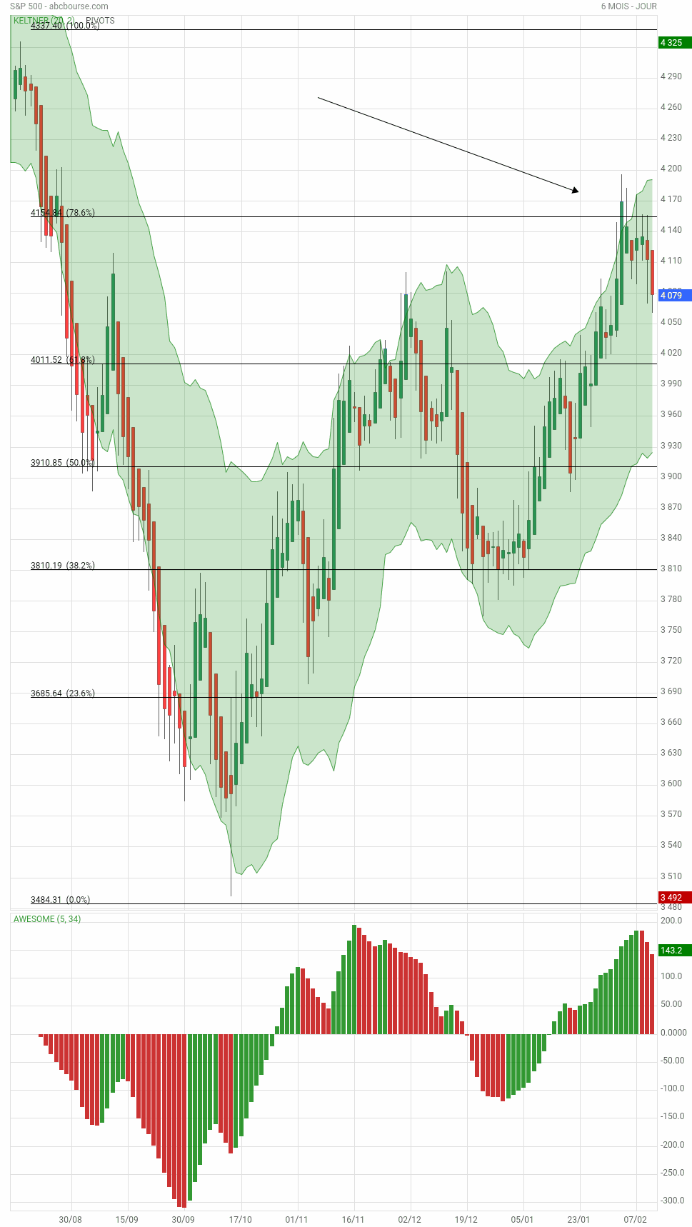 Sur le même graphe. On en a même un quatrième à droite. L'ultime rebond après le dernier repli, sans flèche ici.