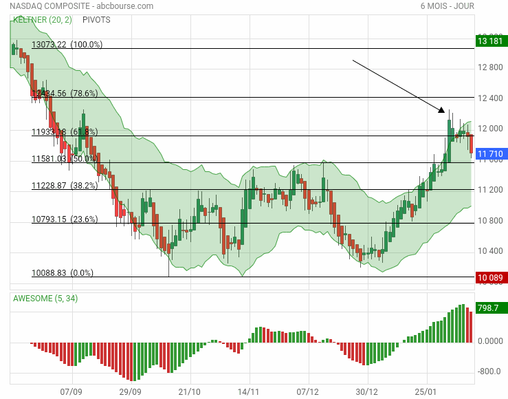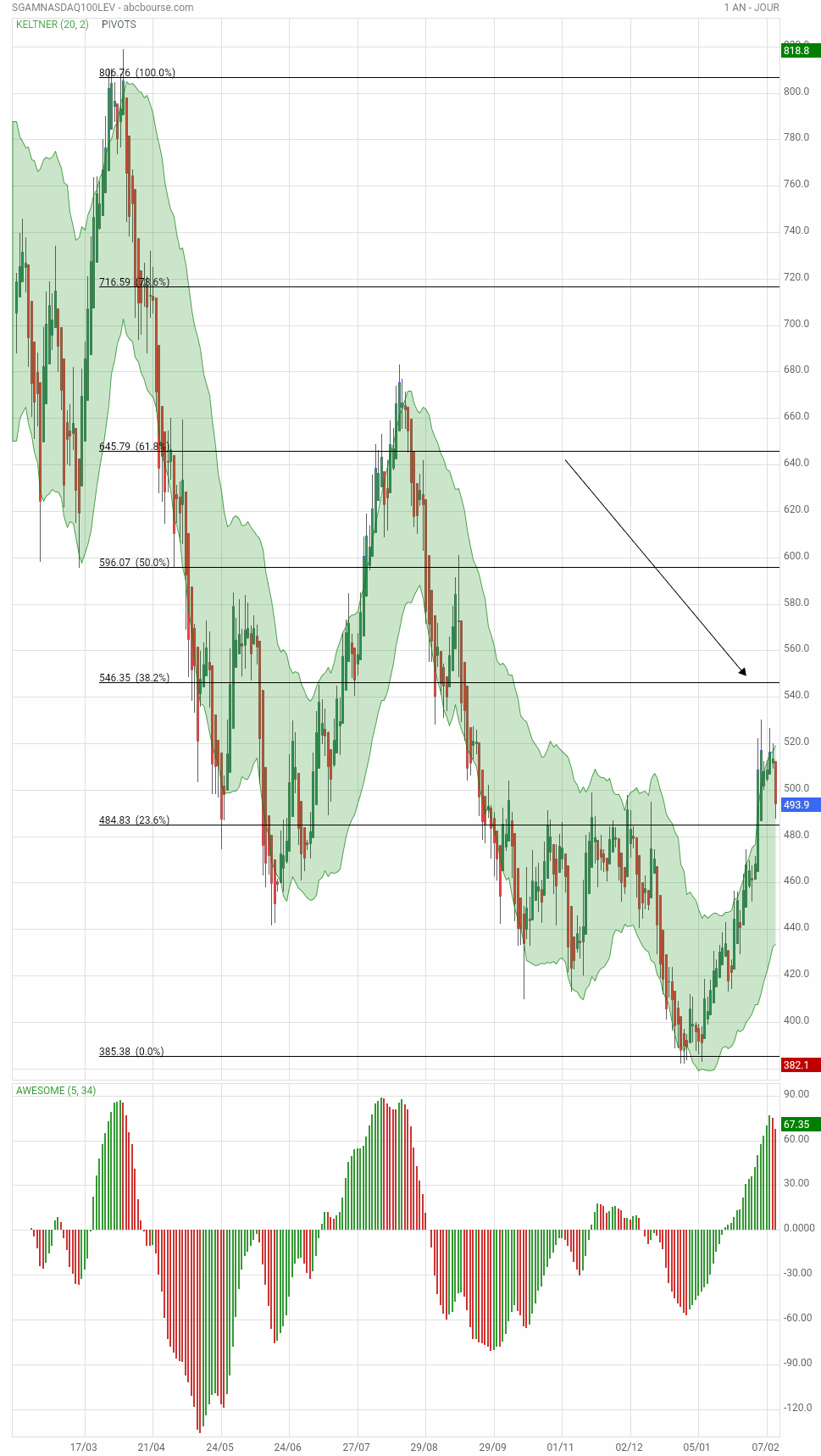 Sur cette UT 6 mois, le Nasdaq,n'a pas encore retracé les 76%. Attention, comme.pour le SP, s'il ne.le fait pas...