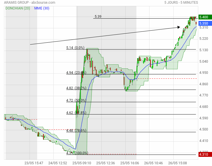 Lors de la hausse, 3 phases up visibles. Et s'étendant sur 2 seances.