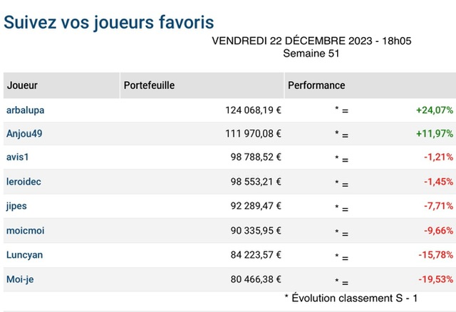 Encore un chouïa de suspense. Avis1 et Leroidec ne sont séparés que par…. 0,25% d’écart après une année de compétition. Mais lequel des deux sera sur le podium ?