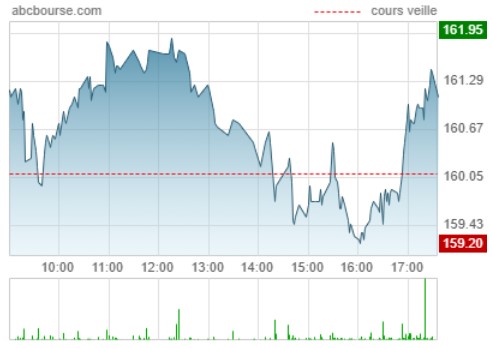 Et le tout en explosant 5 fois à la baisse et 5 fois à la hausse le "support" des 160 ou le "plafond" des 160, je suis un peu perdu ...