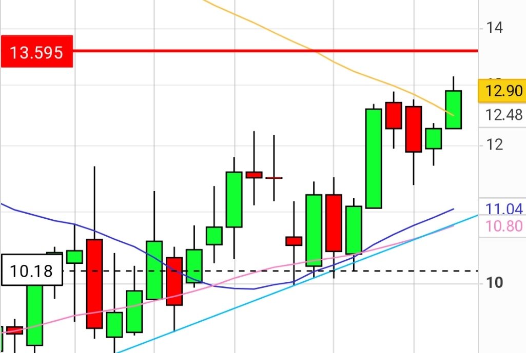 Graphiquement, la bougie hebdomadaire qui est entrain d'etre dessinée devrait atteindre les 13,60€ d'ici la fin de cette semaine. Vendredi 20 janvier 2023 et non pas 2022.
