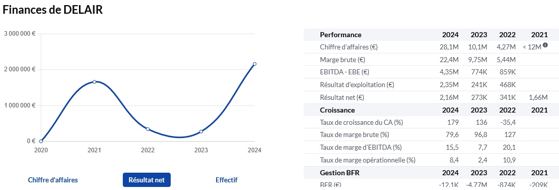 DELAIR, non coté bourse, Delair ne joue pas dans la même catégorie. Possède de chaînes de production. Delair ne semble pas avoir de difficultés à financer son développement en France et à l’international.