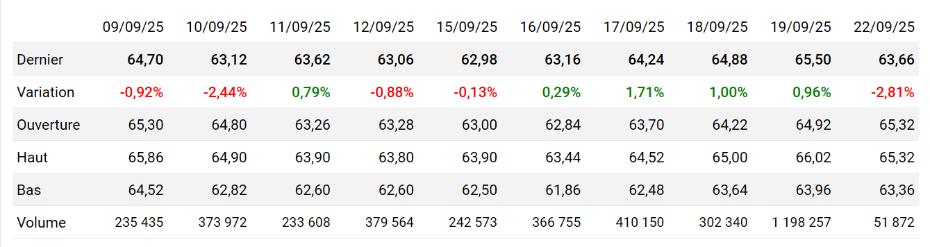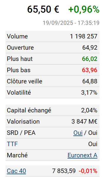 64.44€ à cette heure ce jour , est la résistance à abattre