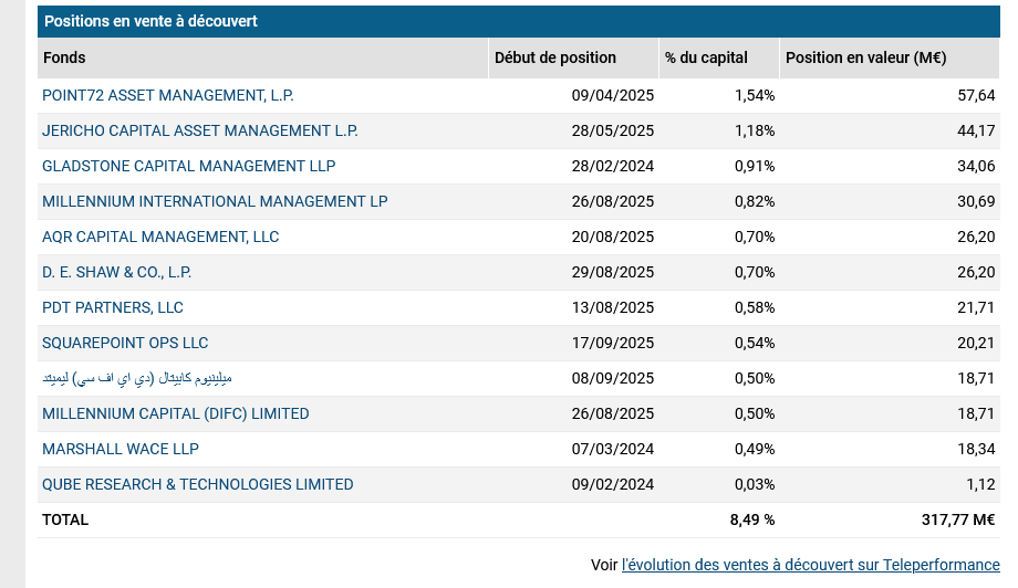 Teleperformance c’est stabilisé cette semaine à 65.50€