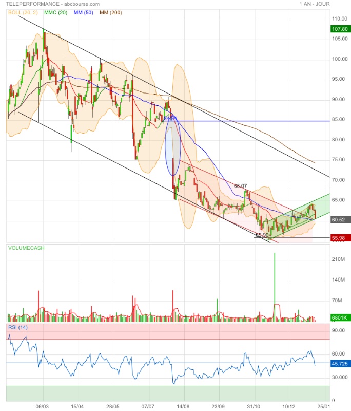 Teleperformance affiche un repli de plus de 5% depuis le début de l'année et près de 32% sur les six derniers mois. En novembre, la société avait notamment publié un avertissement sur résultats, composant avec des chiffres en demi-teinte et révisant ses objectifs à la baisse.