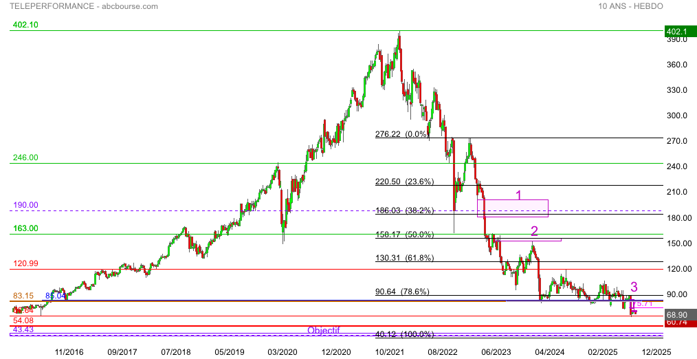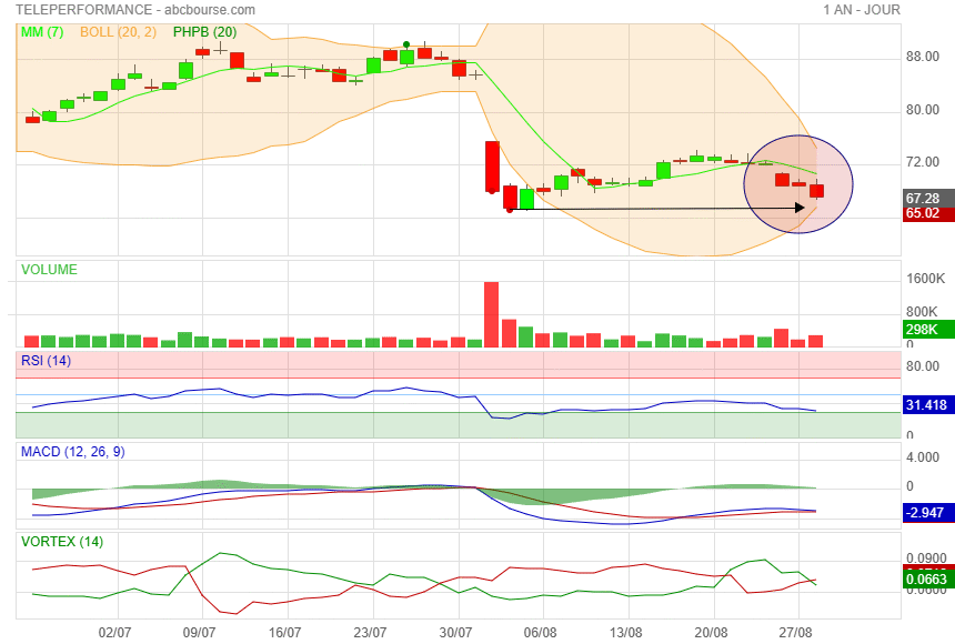 Teleperformance est en baisse ce jour a 68.90