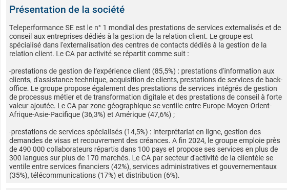 Ne pas oublier que Teleperformance fait 50 % de son CA aux USA donc avec un change défavorable.