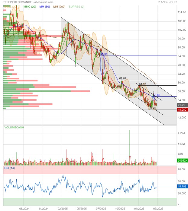 Il doit y avoir un biais cognitif sur Teleperformance, elle ne descend plus depuis un moment mais encore beaucoup de monde la voit descendre en mode luge.