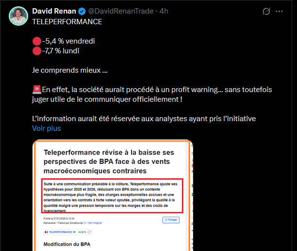 Le problème, c'est que Concentrix, à chaque mauvaise nouvelle publiée, tire vers le bas en bourse Téléperformance.