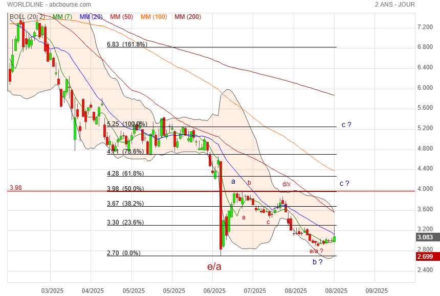 Worldline regagne 50% de la perte et revient sur SOB.. gap demain pour poursuivre le rebond ou échec sur résistance
