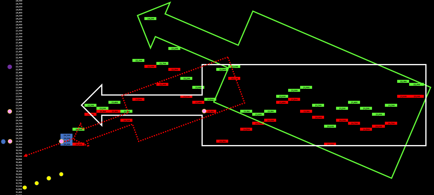 petite baisse, peut-être à 47000?, soit bas de la boite orange n°2
