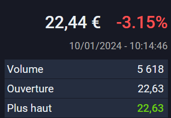 mais j'ai réussi en rentrer une lichette de rien du tout 20.82 . Je pense renforcer progressivement et garder des liquidités si on fait ta chute ....?....