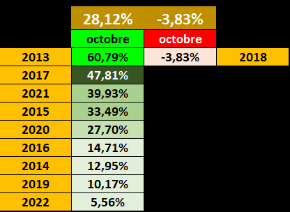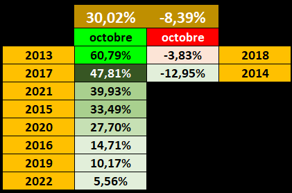 On peut dire que les mois d'Octobre sont largement plutôt positif (mais je sais bien que cela ne veut pas dire que ce mois d'Octobre 2023 sera du même acabit).