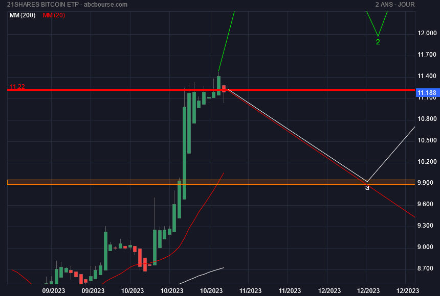 Toujours est-il que lors de la vraie annonce en 2024 de la validation par la Sec de cet ETF, on peut prévoir une même bougie.