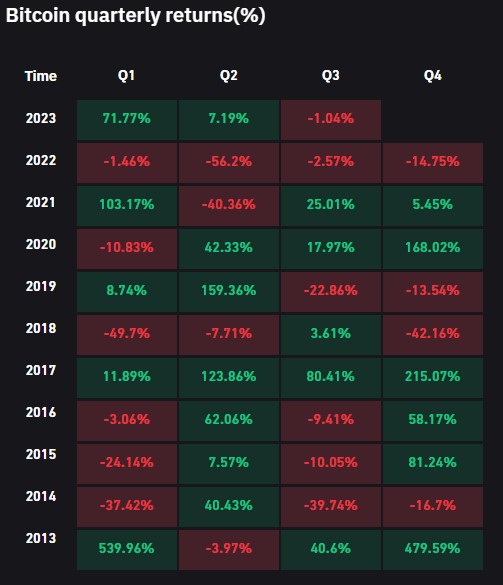 Bitcoin: pour le moment, pour ce mois de septembre, le bitcoin est à -0.66%
