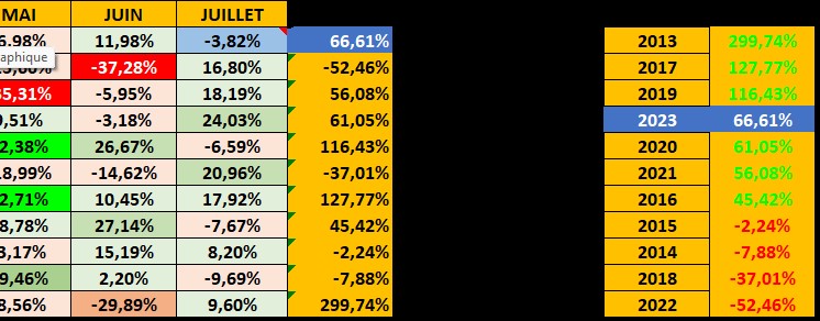 pour le moment 2023 est très largement positive à +66.61% .