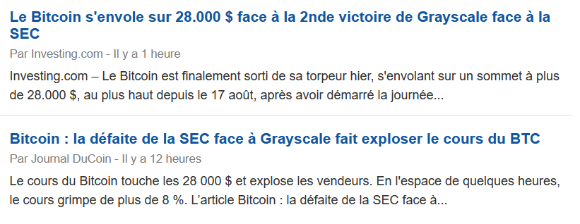 pour le moment rebond du à victoire de grayscale sur la SEC