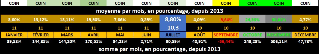 Bitcoin stats depuis 2013 avec moyenne mensuelle: