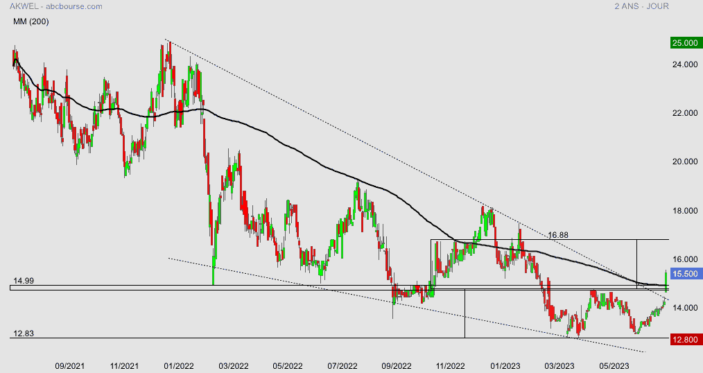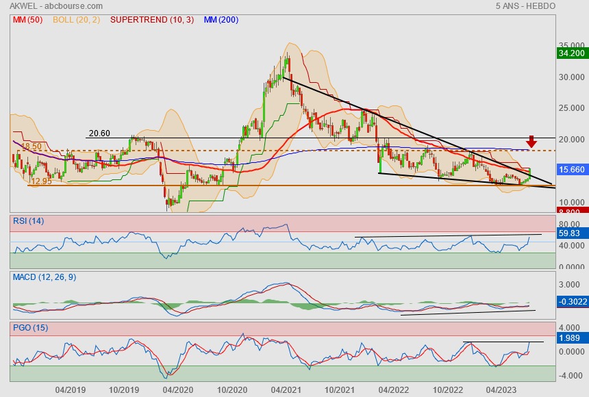Pour ceux qui suivent Akwel l’analyse kagi trimestrielle est formidable pour suivre les seuils importants