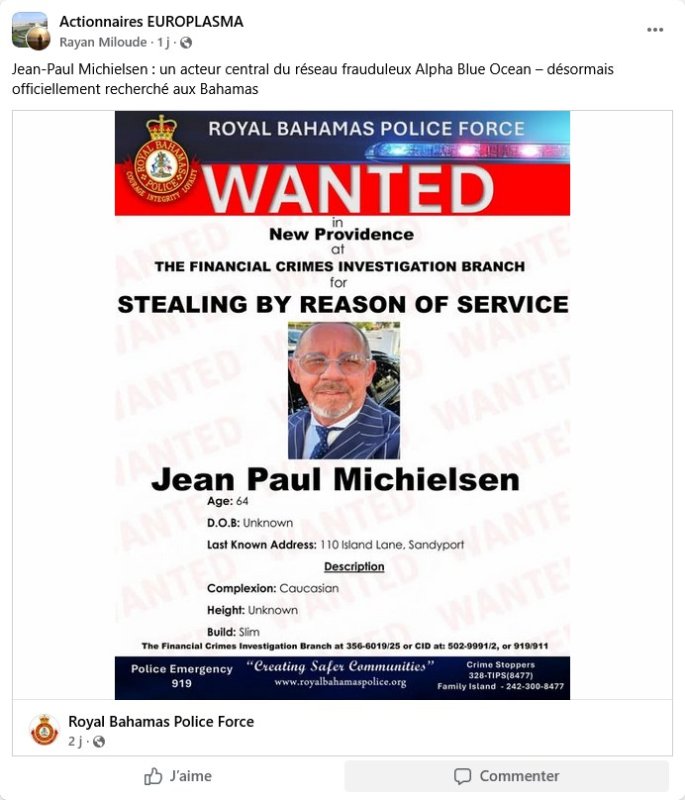 Enfin, lorsque Pharmasimple a été placée en liquidation, Jean Paul Michielsen aurait œuvré pour que certains des fonds récupérés par les mandataires soient expédiés aux Bahamas au titre de supposées créances dues par l’entreprise à ABO.