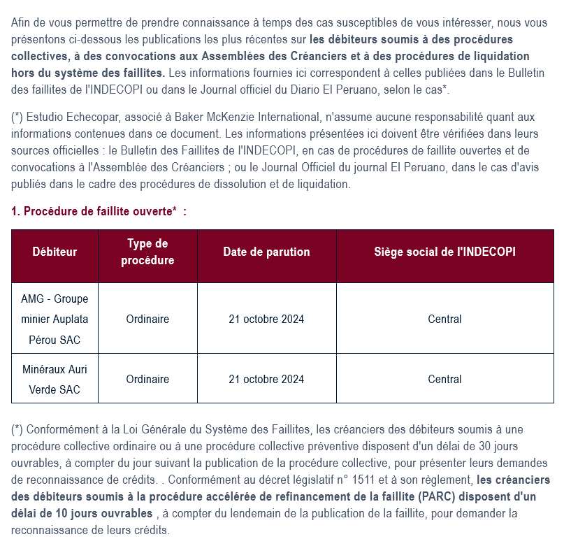Comme mentionné dans le Communiqué de presse du 31 mai 2024 (voir Communiqué de Presse du 31 mai 2024), AMG a présenté une requête auprès du Tribunal Mixte de Commerce de Cayenne afin d'obtenir un délai jusqu'au 30 septembre 2024 pour la tenue de son assemblée générale annuelle. Le Tribunal Mixte de Cayenne a accordé la prorogation de la tenue de l'assemblée d’AMG au plus tard le 30 septembre 2024 par ordonnance du 5 septembre 2024. La Société n'étant, cependant, toujours pas en mesure de pouvoir, notamment, finaliser ses comptes consolidés dans des délais permettant aux Commissaires aux comptes de la Société de pouvoir finaliser leur travaux et établir leurs différents rapports dans les délais impartis pour la tenue d'une assemblée générale le 30 septembre 2024, la Société s’est vue dans l’obligation de présenter une nouvelle requête auprès du Tribunal Mixte de Commerce de Cayenne afin d'obtenir un délai additionnel jusqu'au 30 novembre 2024 pour la tenue de son assemblée générale annuelle. Le Tribunal Mixte de Cayenne a accordé la prorogation de la tenue de l'assemblée d’AMG au plus tard le 30 novembre 2024 par ordonnance du 23 septembre 2024.