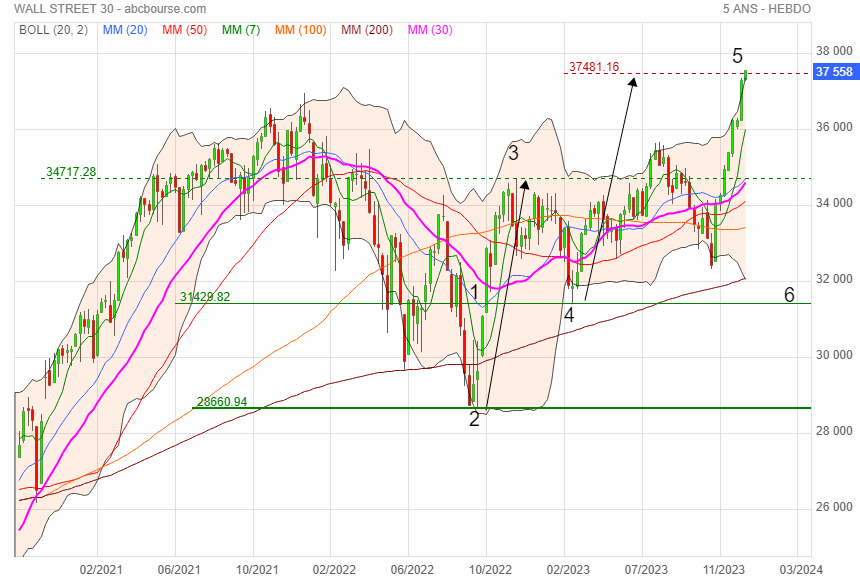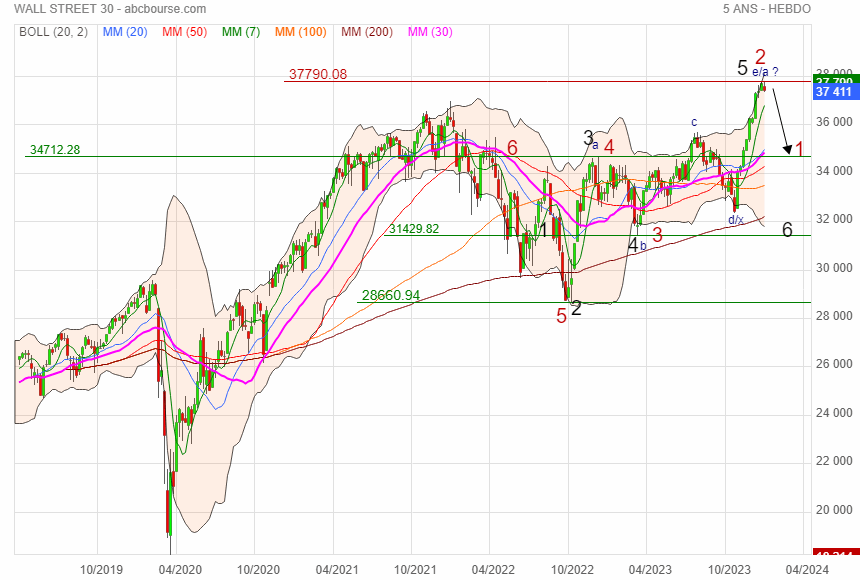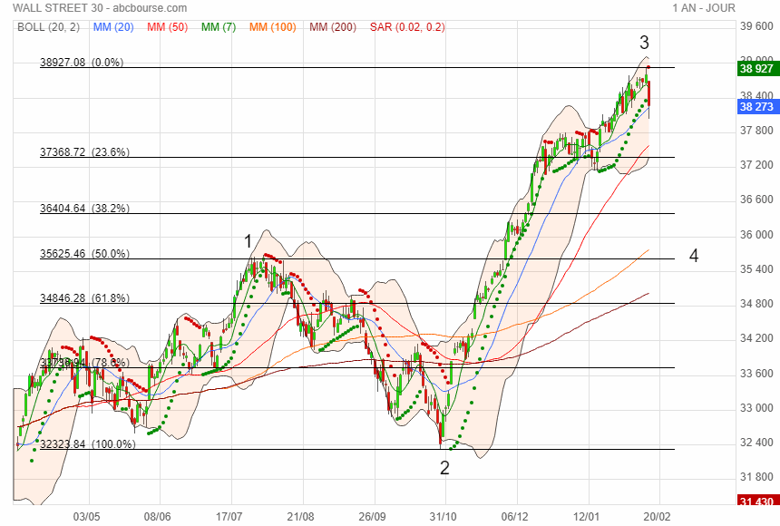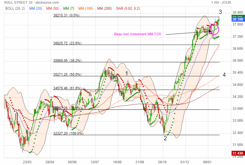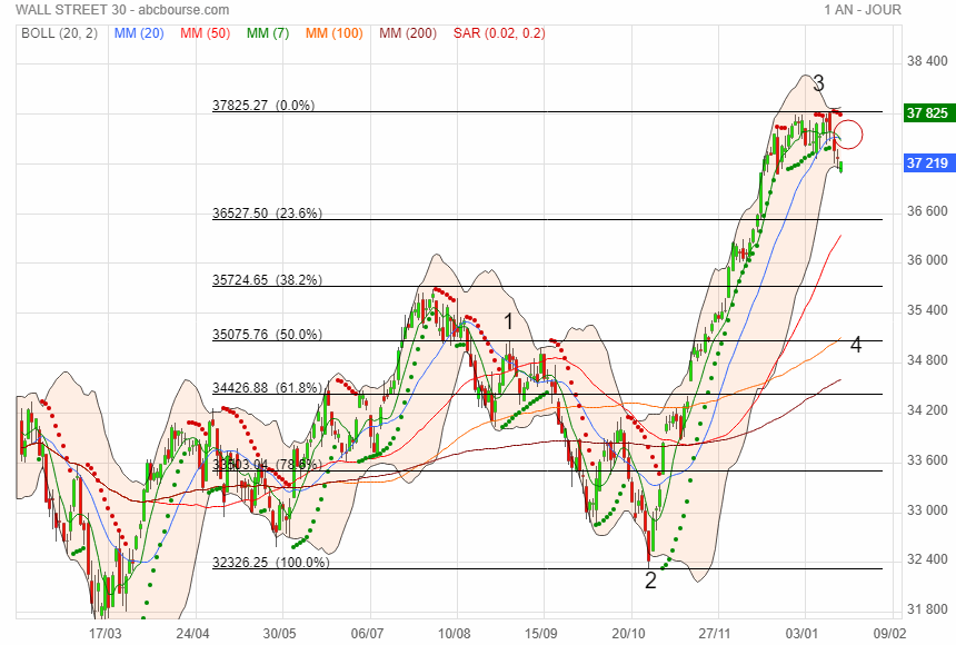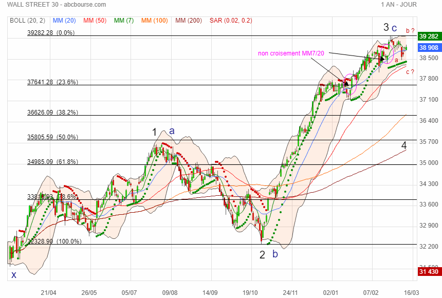 A moins de 800 points d'un éventuel double top (abc rouge)