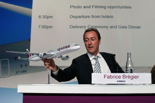 Airbus a livré mardi à la compagnie Qatar Airways le premier exemplaire de son A350-1000, la version allongée du dernier-né de sa gamme long-courrier, en présence d'un des pères de ce gros porteur, Fabrice Brégier, son numéro 2, qui quitte le groupe.