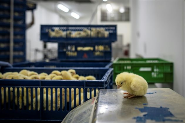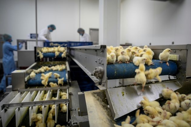 Tel un Niagara de petites boules de plumes jaunes, des milliers de poussins descendent en cascade un tapis roulant. Vieux de 24 heures, ils pèsent 40 grammes et ont devant eux 41 jours à vivre, pas un de plus, dans une immense ferme du centre de la Pologne.