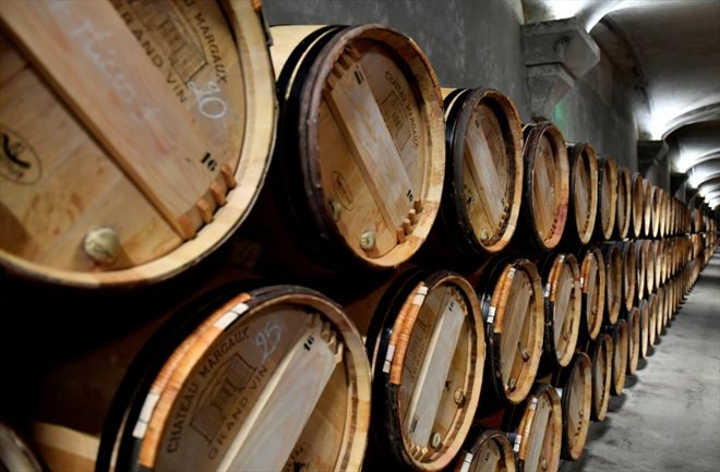 La cave de Château Margaux, domaine viticole de 262 hectares situé sur l'AOP Margaux, à Margaux dans le Médoc, près de Bordeaux le 5 octobre 2017 (AFP/Archives/GEORGES GOBET)