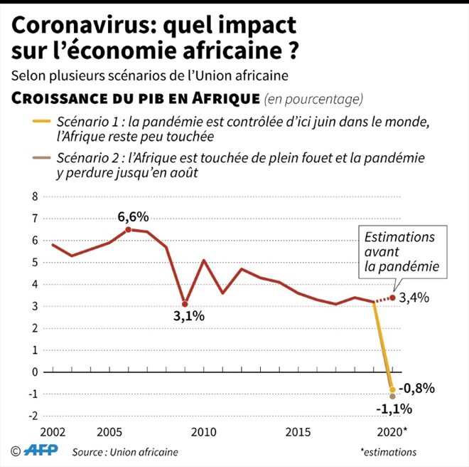 La Banque africaine de développement (BAD) est moins pessimiste, avec une prévision de récession entre -0,7% et -2,8%.