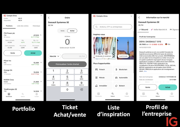 Le compte-titres IG est accessible via une application mobile intuitive, pensée pour rendre l’investissement fluide et accessible à tous.