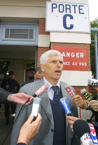 Serge Biechlin, alors directeur de l'usine pétrochimique AZF à Toulouse, interrogé par des journalistes devant l'usine le 25 septembre 2001 (AFP/Archives/PASCAL PAVANI)