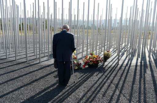 Un homme se recueille le 21 septembre 2016 devant un monument à la mémoire des victimes de l'explosion sur le site de l'usine chimique AZF à Toulouse après l'explosion le 21 septembre 2001 (AFP/Archives/ERIC CABANIS)